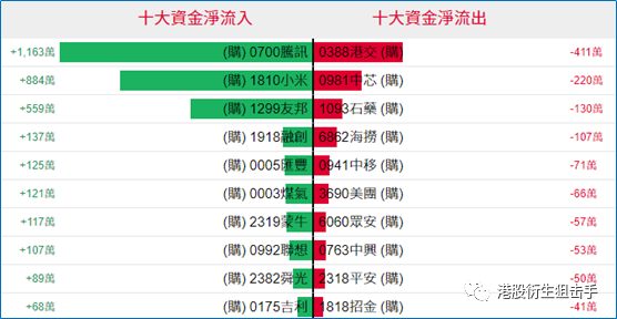 认购证方面,周三有1163万、884万港元资金分别净流入腾讯、小米部署造多,而有少量资金净流出港交所、中芯套现。