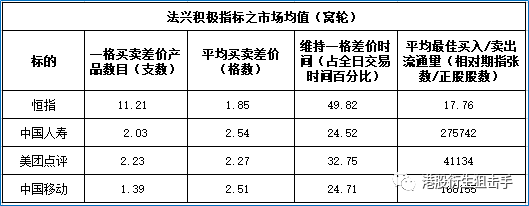 周四恒指窝轮的一格买卖差价产品数目升至11.21,平均买卖差价的格数则降至1.85,个股提取中国人寿、美团点评、中国移动相关窝轮条款质素,美团点评的一格买卖差价产品数量最多,平均最佳买入/卖出流通量方面,中国人寿的最佳。