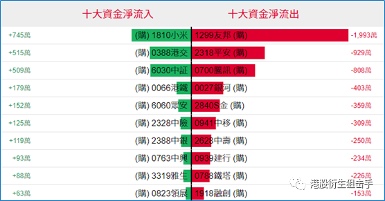 认购证方面,周三有少量资金净流入小米、港交所部署造多,而有1993万、929万港元分别净流出友邦、平安套现。
