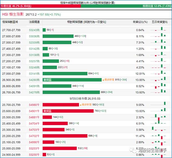 街货分布方面。截至周四,恒指牛证新增区域25700点至25800点,累计期指合约为563张;恒指熊证分布在26600点至26700点区间的期指合约均被收回。